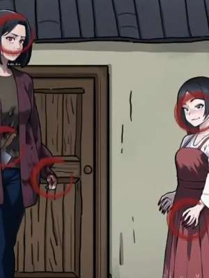 2、找出诡异地方后进入剧情来到屋外找出母女两个人的不对劲地方。妹妹的影子和她诡异的笑容以及她那超长的指甲;母亲红色的眼睛,手上的血和腰间的菜刀。