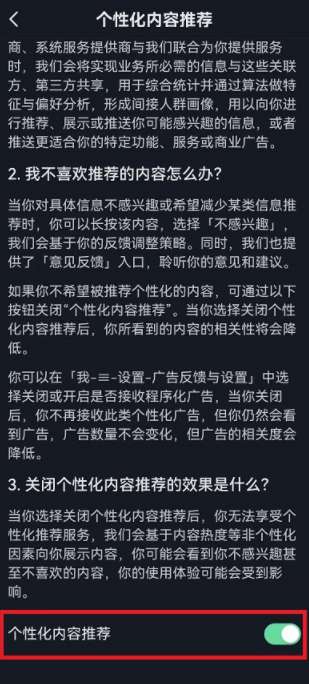 5、最后,在此功能界面中,上划屏幕,在界面的最下方,拥有【个性化内容推荐】功能,用户点击关闭即可,关闭个性化推荐。