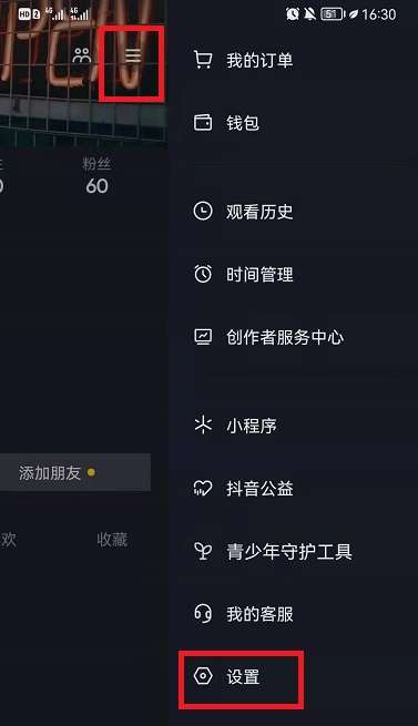 2、然后在界面中点击右上角的【三】,然后在弹出的界面中点击【设置】,进入到设置界面中;