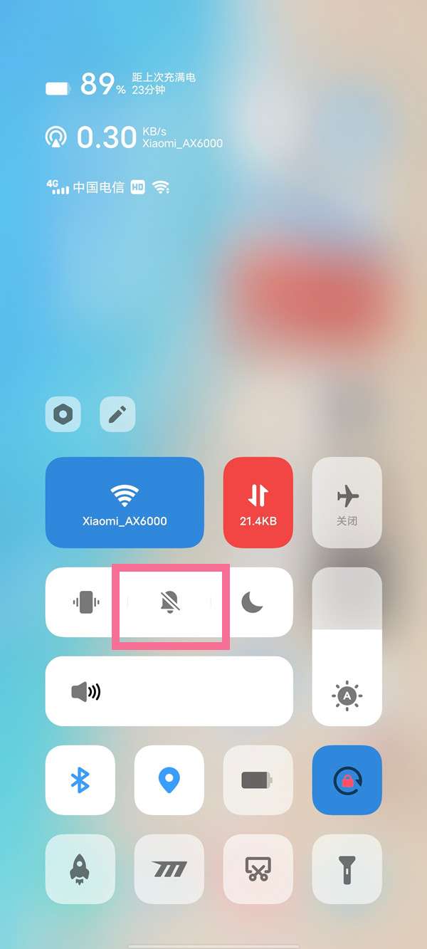 3、还可以从屏幕上方向下滑,呼出控制中心,选择静音模式。