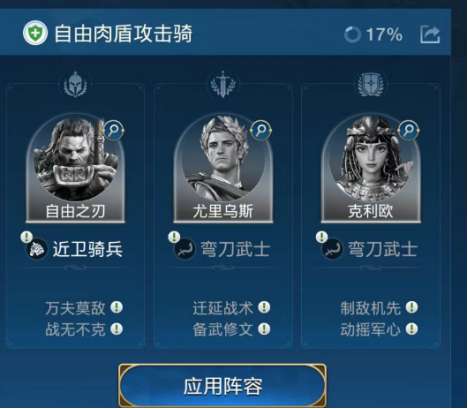 兵种方面,安东尼奥携带防御型近战兵种,克利欧带智力输出兵种,尤里乌斯带辅助兵种。