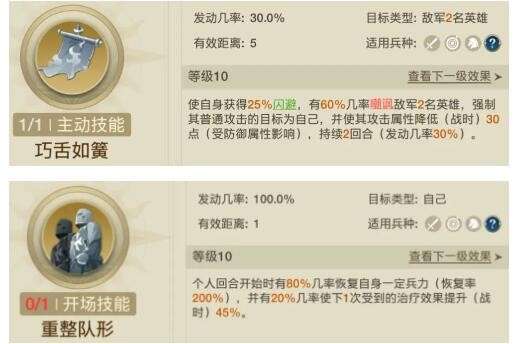 安东尼奥可以带上“重整队形”和“巧舌如簧”两个技能。重整队形是一个强力恢复技能,而且安东尼奥分摊伤害的时候也会出现伤兵,可以将技能收益最大化;巧舌如簧则是提供控制,并且让安东尼奥有机会闪避,进一步提升坦度。