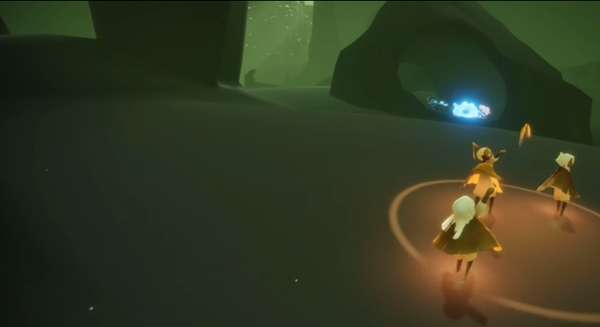 4、接着玩家蹚过黑水,来到刷新黑暗植物的洞穴里,也就是鸭子面具先祖的起始点。