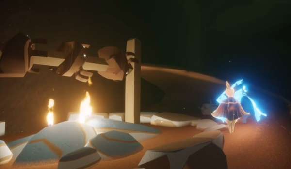 5、然后玩家通过绕一圈后返回烤螃蟹架子处,点燃先祖石像。