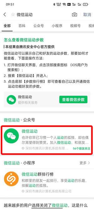 2、打开微信搜索查找【微信运动】,点击公众号进入开启微信运动服务;