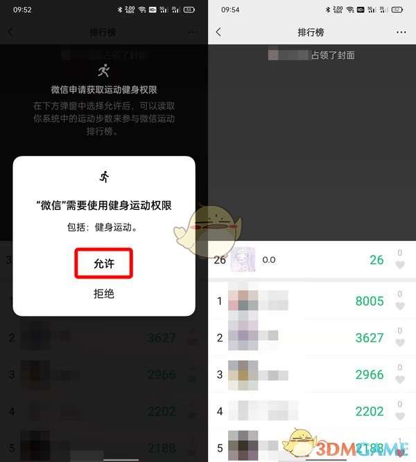 6、再弹出的权限确认窗口中点击【允许】,授权后即可看到自己的步数,如果为0,重启微信后即可显示。