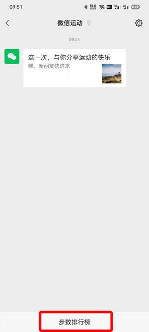 5、在微信运动聊天窗口中,点击下方的【步数排行榜】;