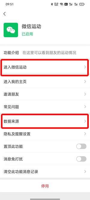 4、开启微信运动后,通过“数据来源”选择使用手机数据,再点击【进入微信运动】;