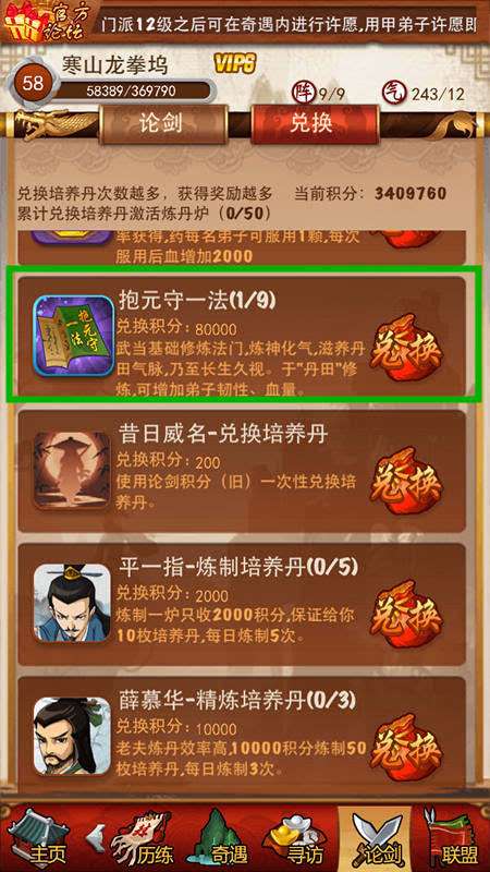 这三个角色都是可以兑换的,不过立地成佛这个角色需要玩家在当前开服排行榜第一的位置,才能购买,价格只需要1点荣誉点。扫地僧和诸葛都需要665点荣誉点。而且在荣誉商店中,还会有斗剑丹和凝气丹。不过价格就很高了,要1500点荣誉点才能购买。