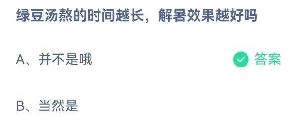 2022支付宝蚂蚁庄园7月4日的题目为:绿豆汤熬的时间越长解暑效果越好吗?正确答案是什么呢?很多小伙伴可能还不太清楚。下面小编就为大家带来了正确答案分享,希望能帮助到你。