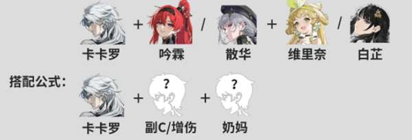配队公式:卡卡罗+副C/增伤+奶妈
