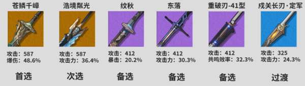 次选五星:浩境粼光、纹秋、东落、重破刃-41型