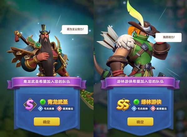 在游戏之初我们跟随系统指引就能获得光明圣女、青龙武圣等英雄,助力新手起步;随着任务的推进,解锁第9块领地即可收获SS级木系英雄-绿林游侠。