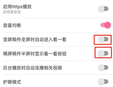 3、将竖屏稿件全屏时自动进入看一看、横屏稿件半屏时显示看一看按钮右侧开关关闭即可。