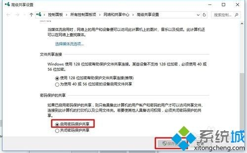 11、从打开的“高级共享设置”界面中,展开“公网共享”列表,勾选“启用密码保护共享”项,点击“保存更改”项即可。