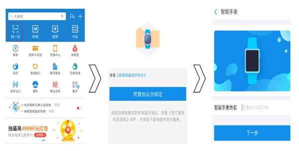 2、打开支付宝,扫描设备上的二维码,根据提示绑定设备。