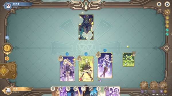 3、然后是第二个回合,需要6个草或者是万能骰子,然后释放柯莱的E技能,接着是释放刻晴的Q技能直到回合结束;