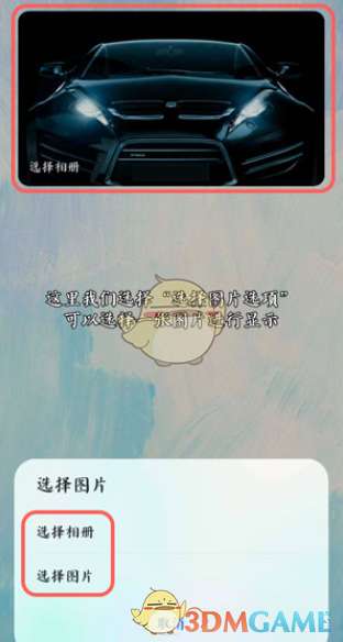 7、选择【选择图片】,然后找到需要展示的图片点击右上角的【√】,如果想要展示指定相册文件内的所有图片,可选择【选择相册】;