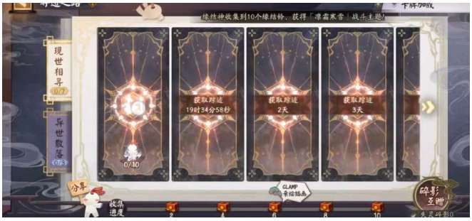 1、在CLAMP联动活动期间,玩家可以通过现世相寻玩法战斗击败敌人获得式神碎片,多余的式神碎片可以赠送给朋友,也就是「失灵碎影」