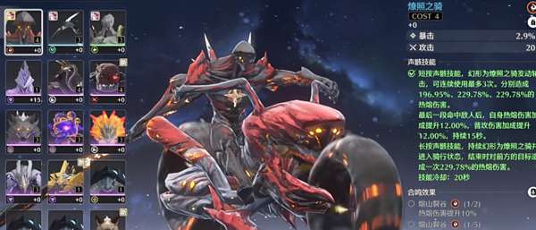 1、短按声骸技能,幻形为燎照之骑发动斩击,可连续使用最多3次。分别造成196.95%、229.78%、229.78%的热熔伤害。
