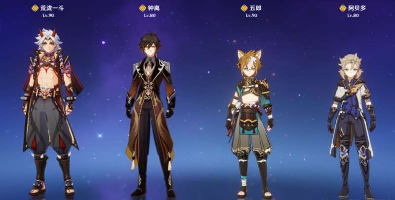 因此这里能选用的辅助就只能从阿贝多、凝光等方面选择了,这两个角色是副c模板的。虽然有一定的辅助效果,但是主要还是以输出为主。用这两个角色替换五郎的主要目的是在不影响三岩加持的情况下,将没有五郎所缺失的伤害直接打出来。其中阿贝多本身也是防御转攻击的c,所以在伤害量上也是足够的,至于凝光本就是主c,大世界还可以用璇玑门快速破盾。