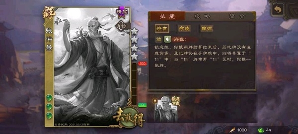 1、济世:锁定技,你使用牌结算结束后,若此牌没有造成伤害,且此牌仍在弃牌堆中,则将其置于“仁”中:当“仁”牌离开“仁”区时,你摸一张牌。