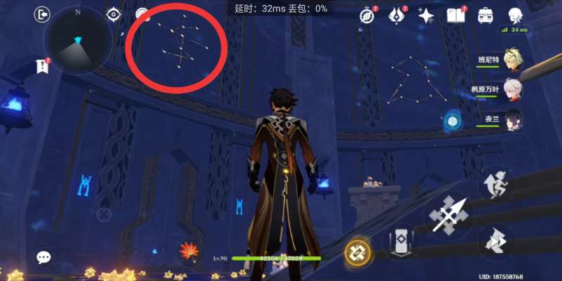5、进入莫娜秘境中,进入红圈标注的图标的房间中,走到尽头后,他会让你画出两个星图,密完成便会出现一个↘,我们直接触碰石壁便会出现一个门里面有个海螺