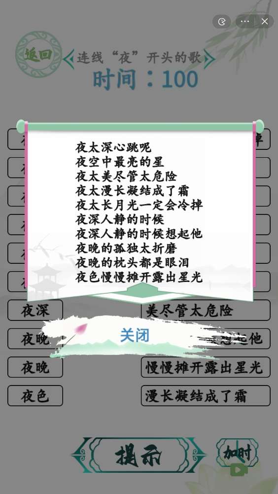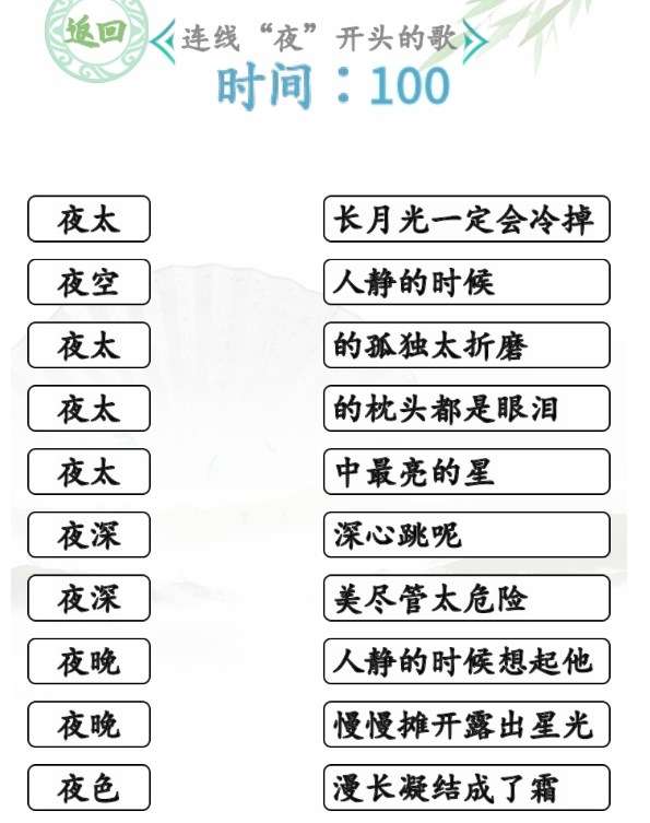 汉字找茬王攻略 关于连线夜开头的歌关卡的通关教程