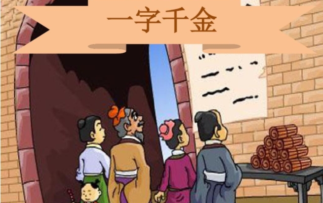 吕不韦便组织门客开始这项工作,他自己再分门别类,变成“八览”“六论”“十二纪”三个部分,总计20多万字。吕不韦取名为《吕氏春秋》,并把命人把它全部抄写后张贴在咸阳的城门旁,并将千金悬挂在书的上面。吕不韦许诺,如果有人能够在书中增加一个字或者减去一个字,就奖赏给他一千金。这便是“一字千金”的由来。
