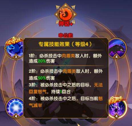 3阶:被必杀技击中之后的目标,无法回复怒气,持续1回合