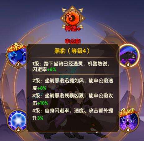 3级:坐骑黑豹残暴凶狠,使申公豹攻击+10%