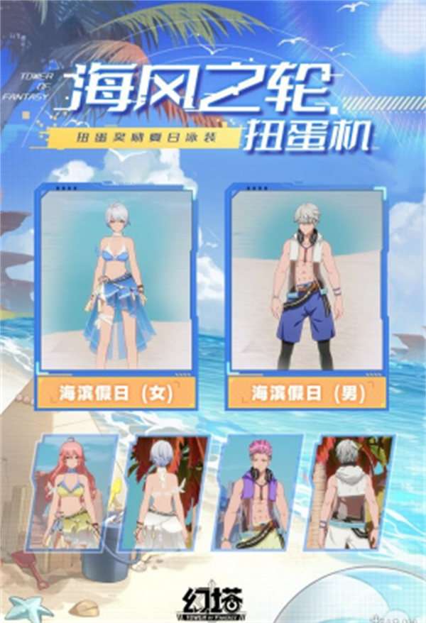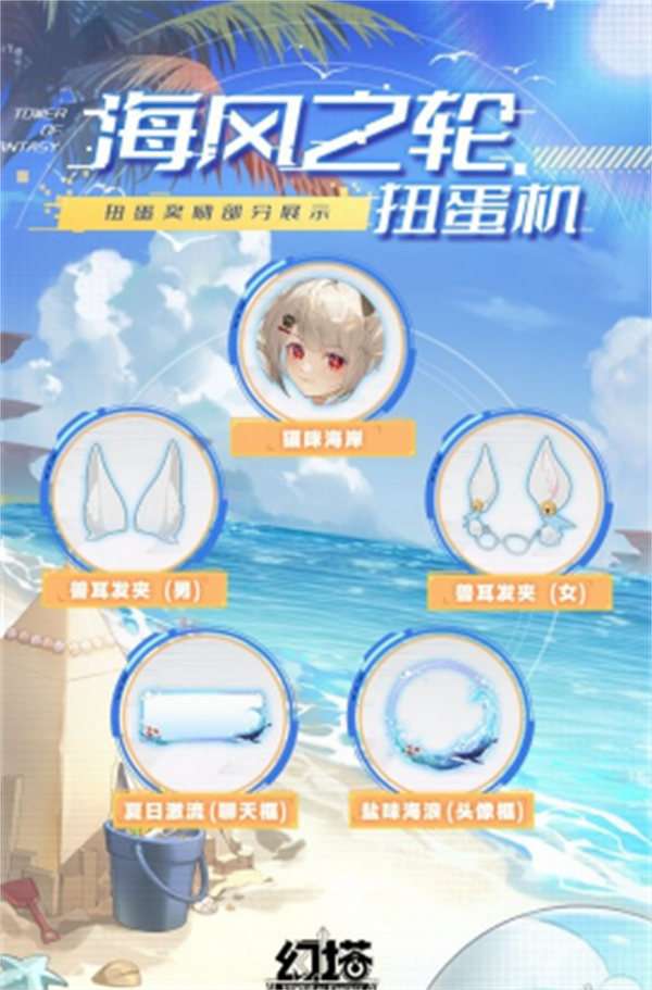 活动期间,开启海风之轮扭蛋机,通过扭蛋机可获得夏日泳装-海滨假日,超萌饰品-兽耳发夹,晶尘狂欢礼盒,晶碎狂欢礼盒,夏日装饰-猫咪海岸、盐味海浪、夏日激流,及赤核、金核、特种凭证、检索凭证等道具资源。