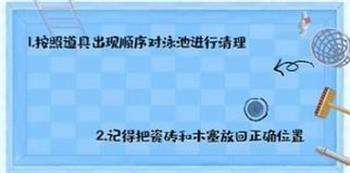 玩家需要按照道具的出现顺序对游泳池清理,并且还要将瓷砖和木塞放回正确的位置。