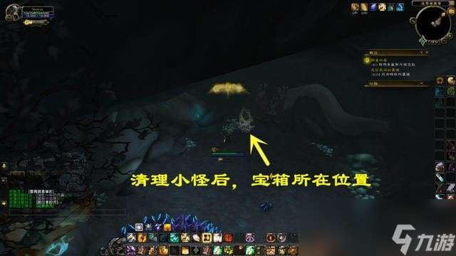 话不多说,地点位于刻西亚地图7点钟方向(魔兽9.1刚刚上线,插件未更新,所有不能提供坐标),此处存在一个洞穴标识,非常好辨认。玩家只需要来到这里,并进入洞穴清理掉小怪即可。