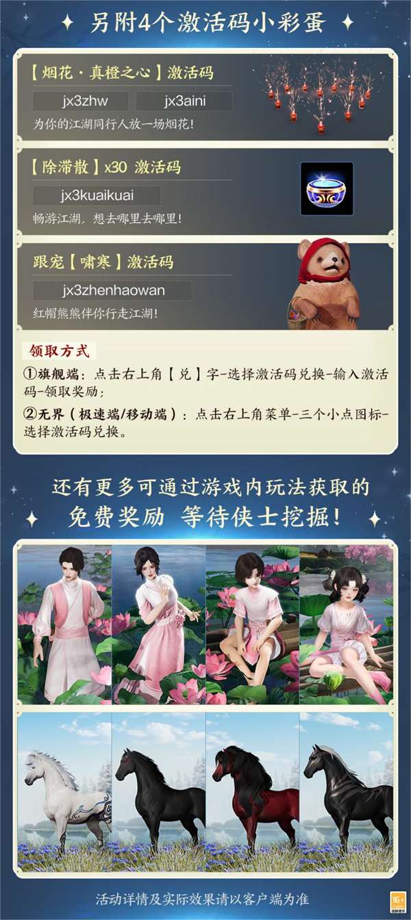 除此以外,江湖新鲜事精彩不断,还有好多有意思的活动等你来玩!奇趣坐骑、跟宠、家具和帽子等超可爱的联动奖励,打造难以忘怀的夏日记忆!