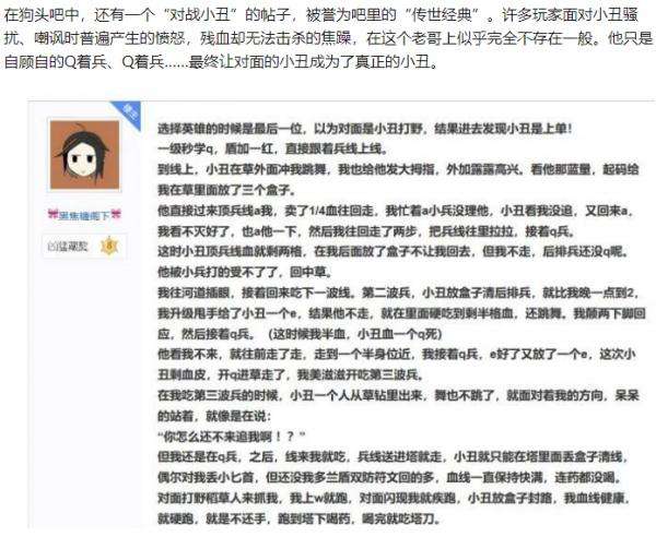 狗头的技能特性是偏成长型的,这也导致其在游戏前期极为弱势,而为了安全发育到强势的游戏中期,狗头玩家们纷纷想出各种办法来混经验。如一级学W减速敌方上单绕圈跑,甚至是一级去断兵线送塔等等。