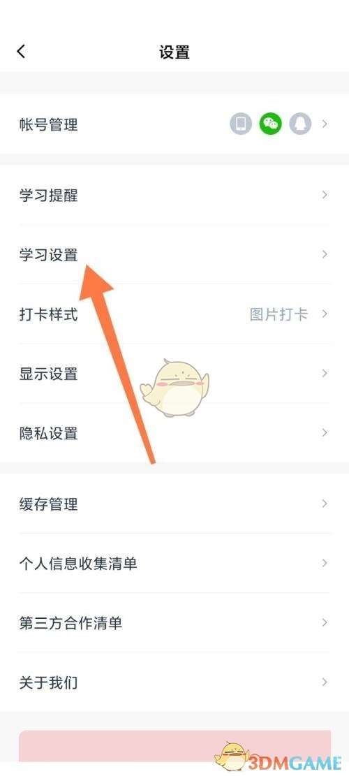 1、首先进入百词斩设置页面,点击【学习设置】。