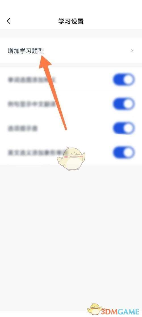 2、然后进入学习设置页面,点击【增加学习题型】。