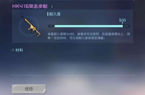 2、hk416属于一件前期比较厉害的武器,可以进行修补,但是后期用来打怪的话,性价比不是很高,也就只能消灭简单的怪物。