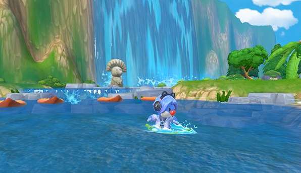 获得了冲浪板之后我们就可以在各种小池子和水沟里自由自在的遨游了,使用冲浪板的方法也比较简单,我们只需要在岸上先掏出我们的冲浪板,然后再端着冲浪板走入水中就可以直接开始冲浪了,拥有了冲浪板之后我们还可以参加冲浪相关的小游戏,在小游戏中获取到许多不同颜色的浆果奖励,如果我们的冲浪技术足够强,在冲浪小游戏中达到了一定的排名还能够获得一些服装以及称号奖励,穿上这些奖励我们就可以成为整个摩尔庄园最炫酷的摩尔。