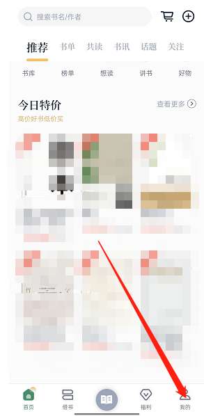 1、打开藏书馆,点击软件下方的符号,进入个人图书馆。
