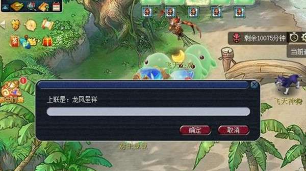 这个是梦幻西游最新活动对王豆豆的对联题目,在附近可以看到飞天公鸡和飞天神狗,算是提示了,答案就是鸡犬升天。