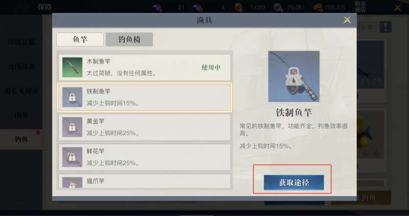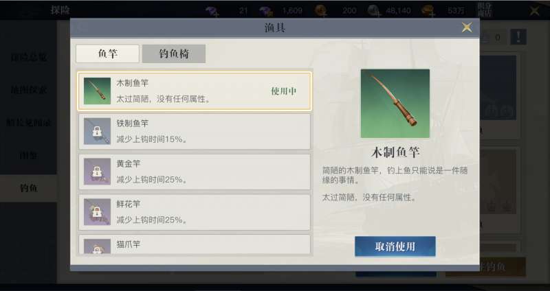2、建议优先购买铁制鱼竿、鱼椅过渡,然后慢慢积累购买5000鱼币的最终鱼竿。