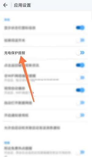 第三步:进入应用设置页面,点击开启【充电保护提醒】,即设置完成,如图所示。