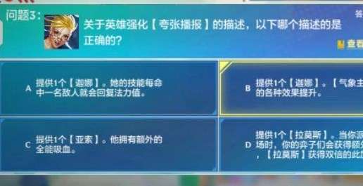 3、关于英雄强化【夸张播报】的描述,以下哪个描述的是正确的?