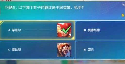 5、以下哪个弈子的羁绊是平民英雄、枪手?