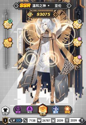 每回合开始时,消耗10%最大生命值活动一个攻击力30%的护盾使自己造成的伤害提高6%持续3回合,满级时提升伤害10%三回合。亚伦强烈建议使用,回合开始前会首先攻击秒掉敌方1-3名角色走高爆发流,神域角色里相当哇塞的人物。