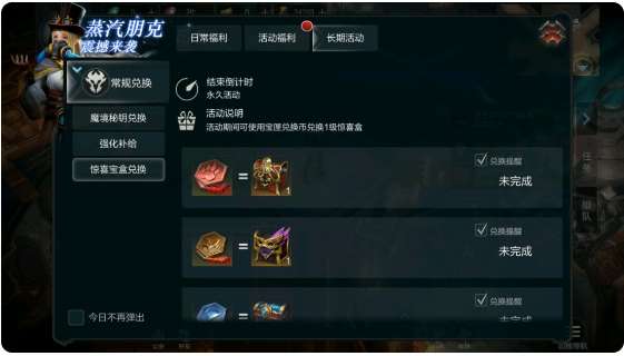 活动内容:活动期间可使用宝匣兑换币兑换1级惊喜盒