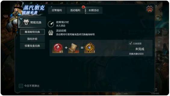 活动内容:活动期间可使用魔境晶球兑换魔境密钥。