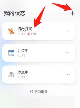 第三步:进入我的状态页面,在页面选择请勿打扰即可设置好状态。